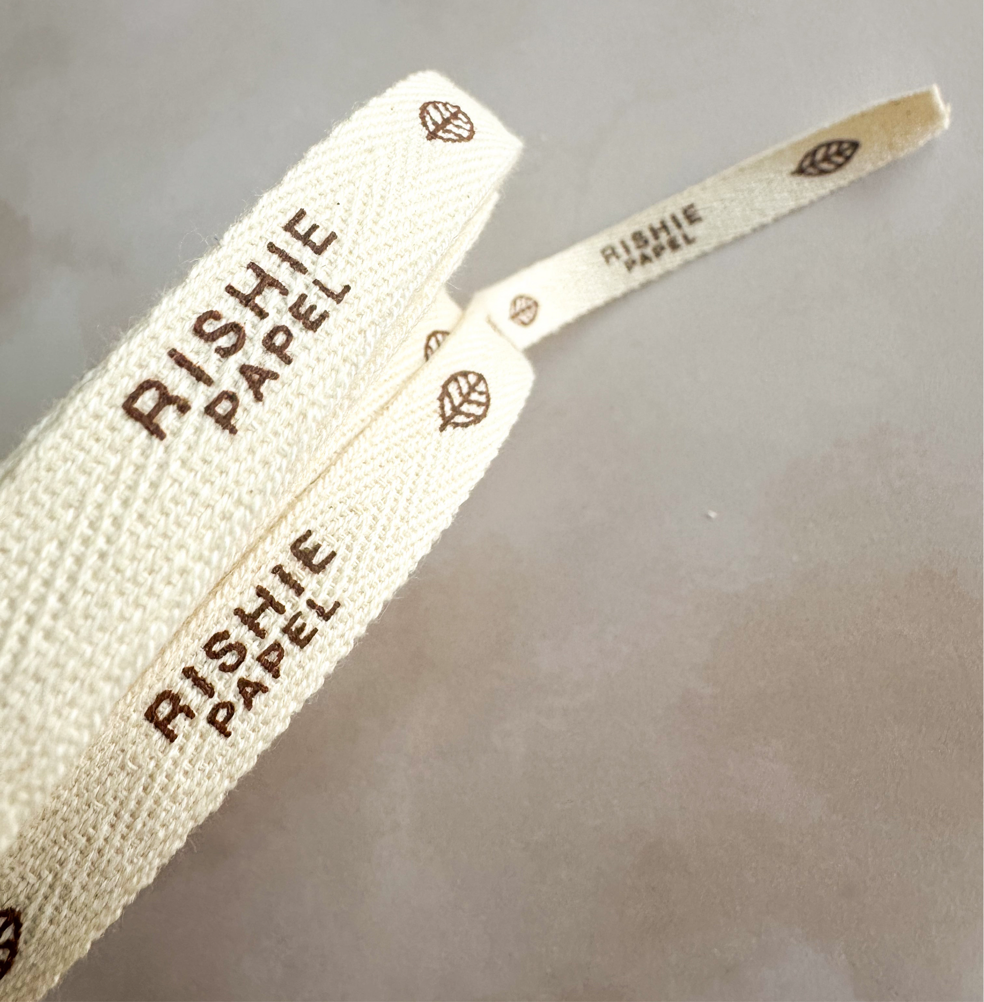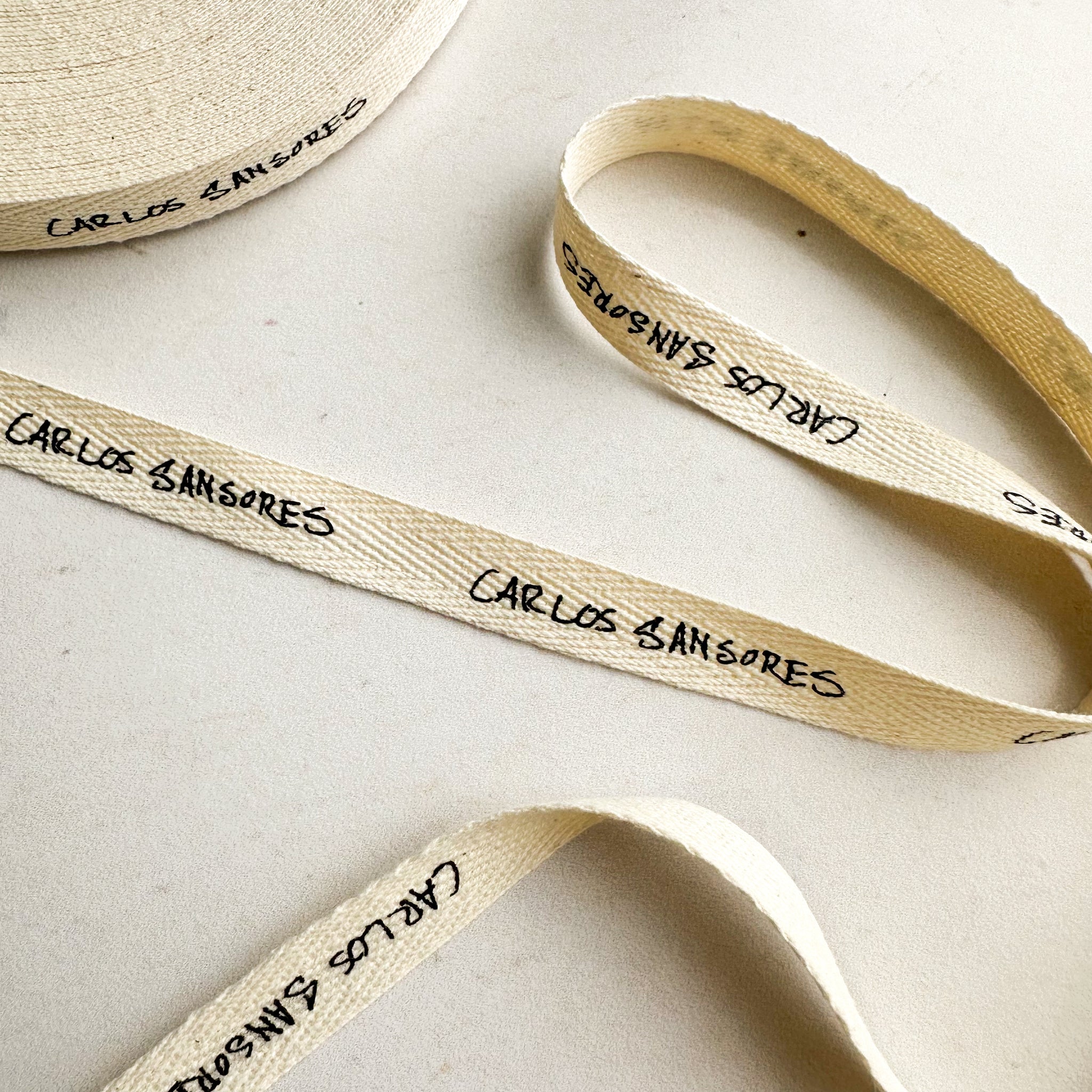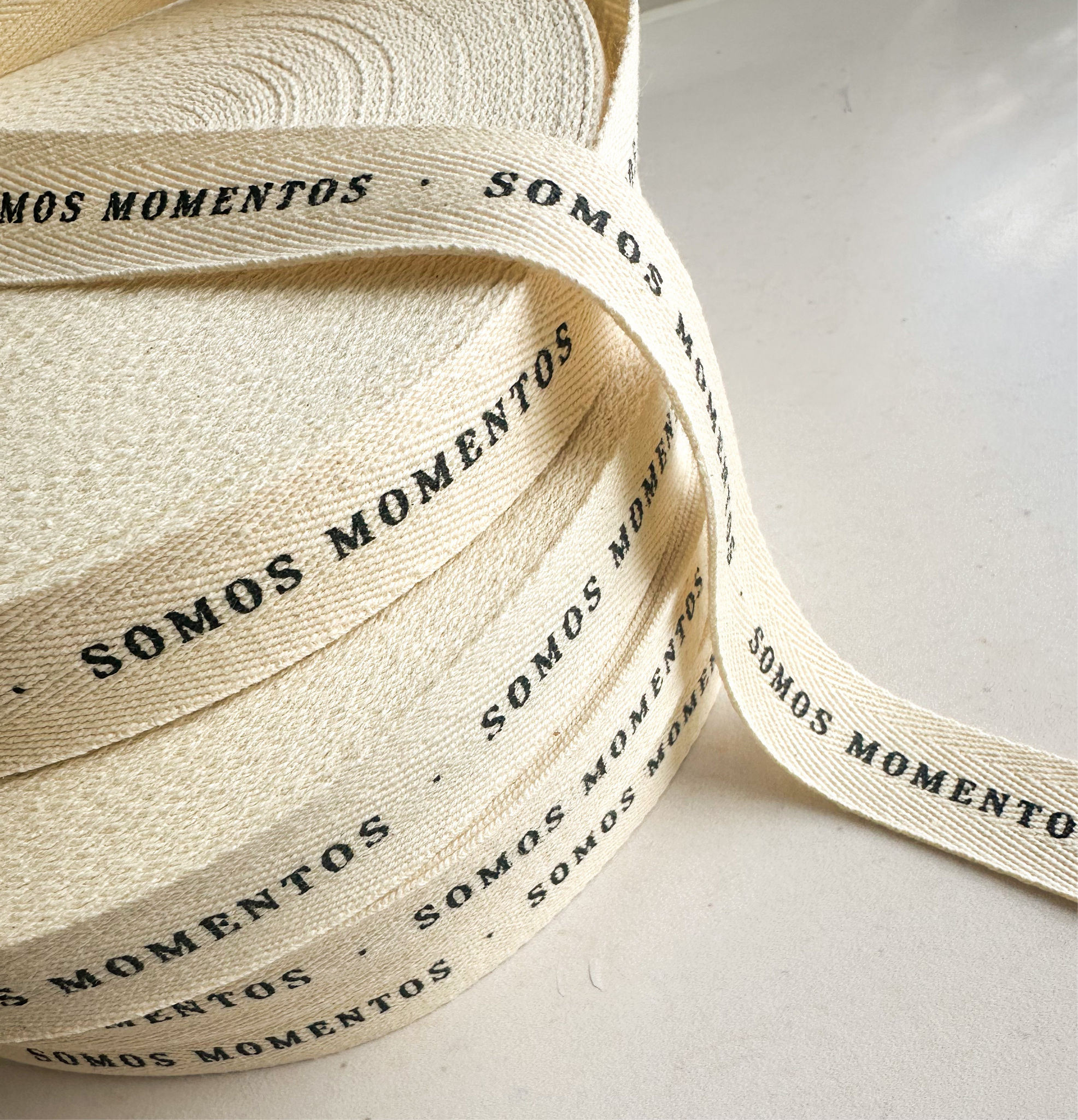 - Rollo de listón de algodón color crudo impreso a 1 tinta. Mismo diseño en todo el listón.