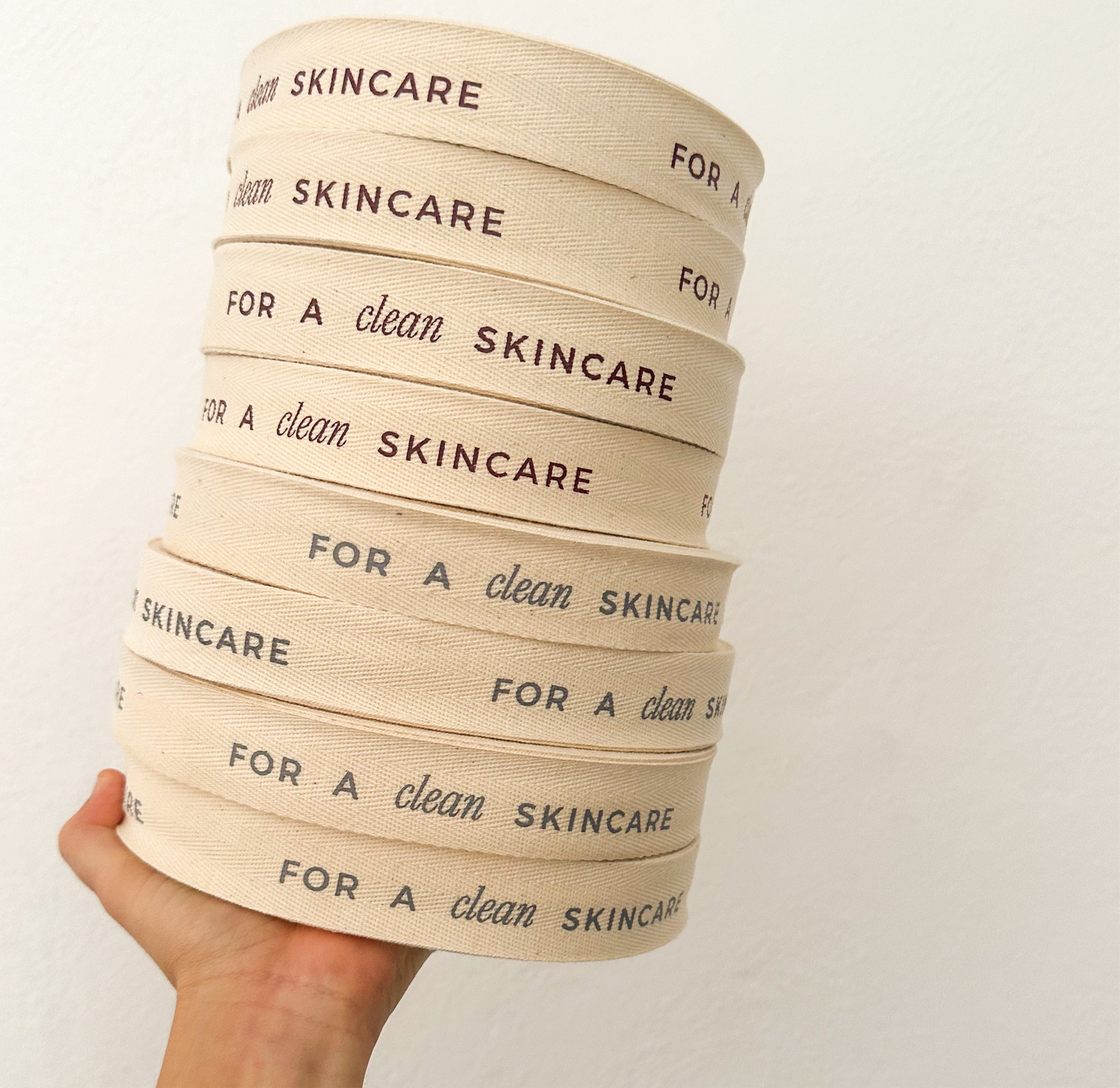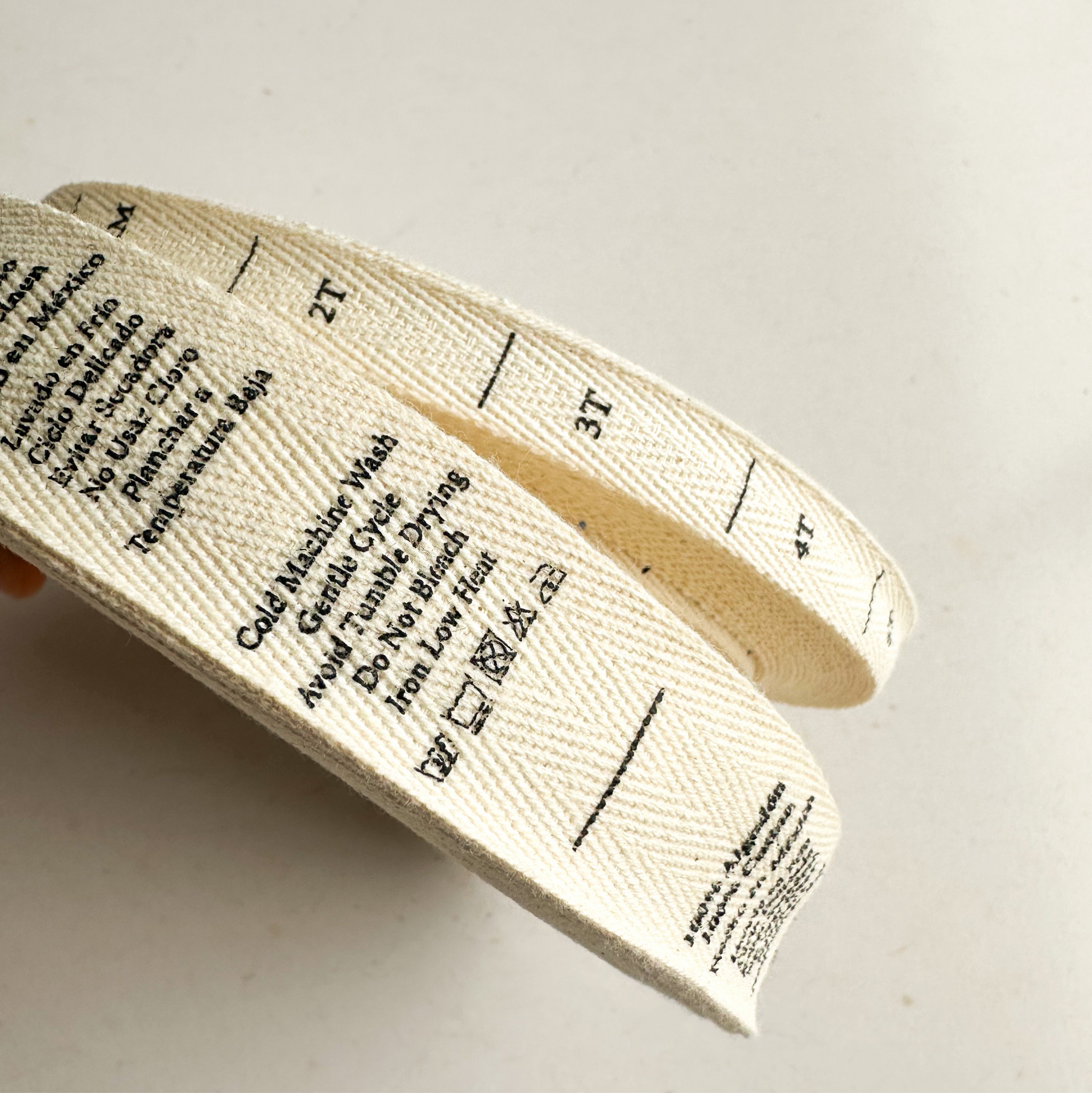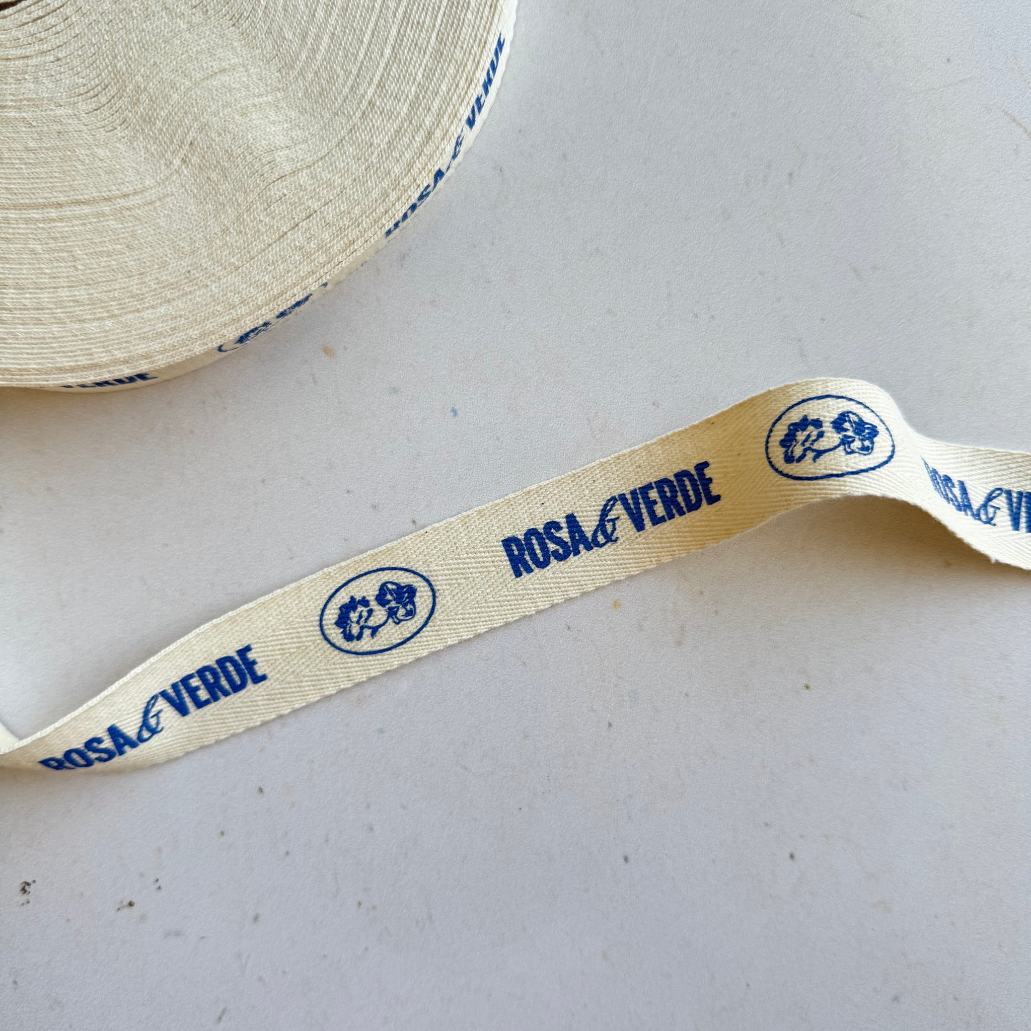 - Rollo de listón de algodón color crudo impreso a 1 tinta. Mismo diseño en todo el listón.