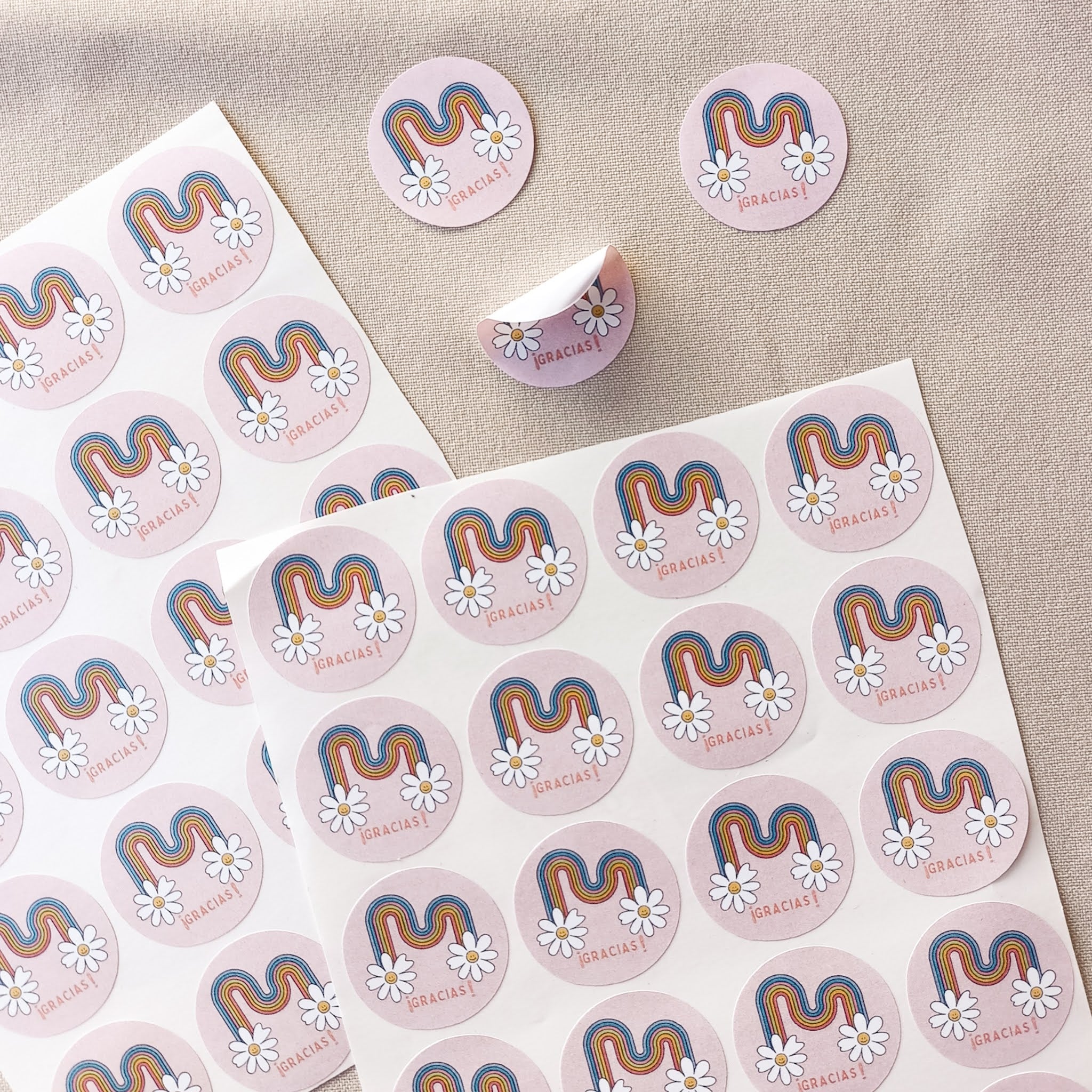 - Un paquete de 100 stickers circulares impresos a color.